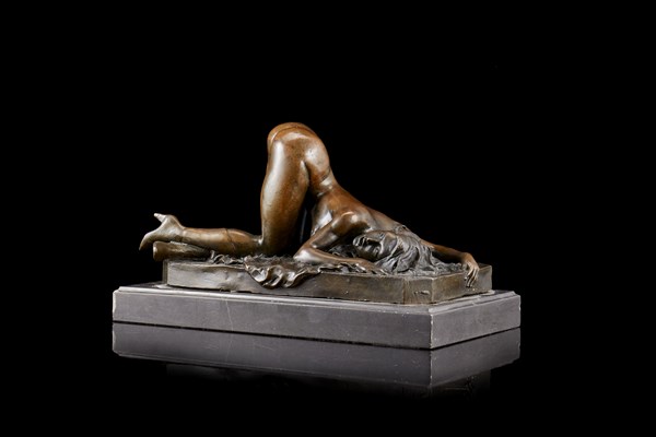 Unknown artist of the 20th century "Erotic Figure" bronze sculpture (cm 25x15x14) on black marble base (defects)