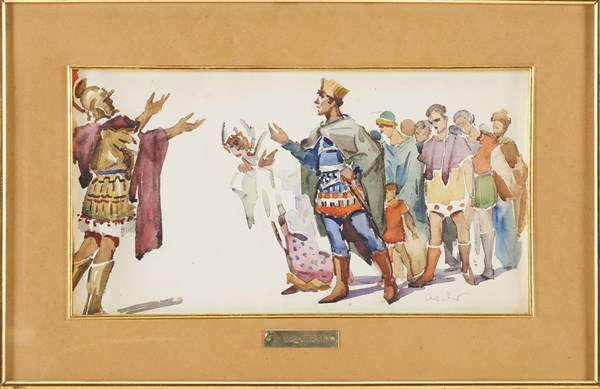 "Scena storica" acquerello su carta (cm 20x38) Firmato in basso a destra, in cornice