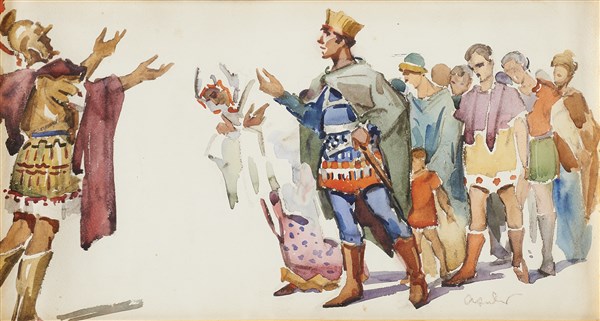 Lotto 33 | Arcangelo Salvarani "Scena storica" acquerello su carta (cm 20x38) Firmato in ba