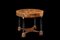Tavolo "Impero" lastronato in noce con piano circolare intarsiato in legni vari