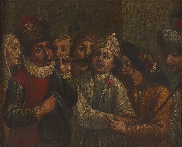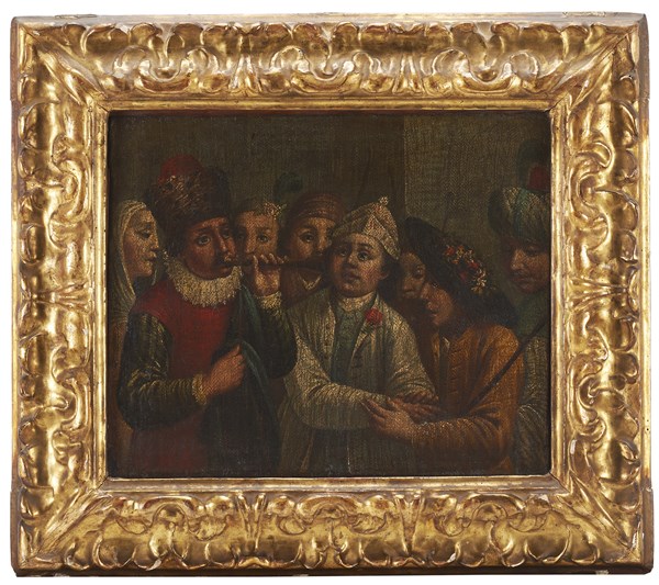 Scuola napoletana del secolo XVIII Scena di genere Olio su tela, cm 35x43 in c