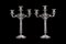 Coppia di candelieri in argento a tre fiamme con braccia portacandele cesellate