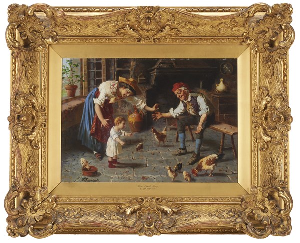Lotto 192 | Eugenio Zampighi "I primi passi" olio su tela (cm 25x34) Firmato in basso a sini
