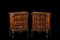 Coppia di mobiletti lastronati in noce e radica di noce con fianchi e fronte mo