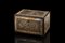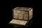 Monetiere intarsiato e filettato in legni vari e osso con decoro stilizzato a vasi di fiori e foglie. Anta sul fronte celante sei cassettini e due tiretti laterali. Piedini torniti. Nord Africa, fine secolo XVIII (cm 43x29x31) (difetti, rotture e mancanze)
