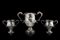 Gruppo di tre coppe biansate di simil decoro in argento con corpo sbalzato a fr