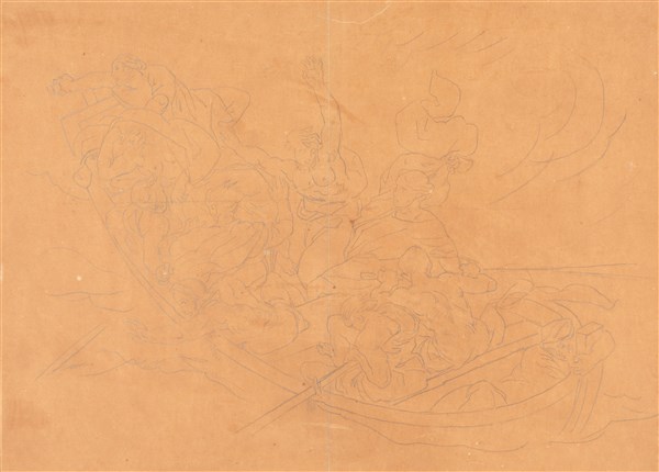 a large romantic drawing depicting Shipwreck, charcoal on paper glued on cardboard (mm 442x579 );