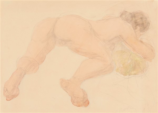 a drawing by an imitator of Rodin depicting Female Figure, black pencil and watercolour (mm 276x 382)