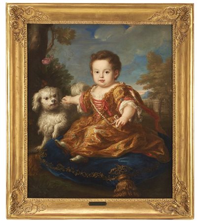 Scuola francese del secolo XVIII Ritratto di bambina Olio su tela, cm 88x73,5