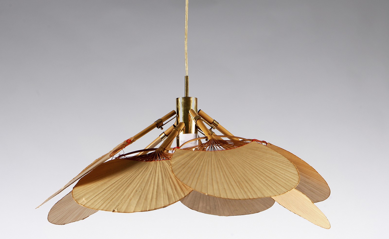 MAURER INGO (N. 1932). Lampadario modello Uchiwa. Uchiwa lamp. Carta di riso, bambù, ottone. Cm 72x110. 1974.