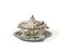 Piccola zuppiera, Faenza, sec. XX, coperchio con baccellatura, bordo smerlato, presa a bulbo, decorato con fiorami policromi, completa di sottopiatto, diam. cm 19,5 e cm 28,5, danni