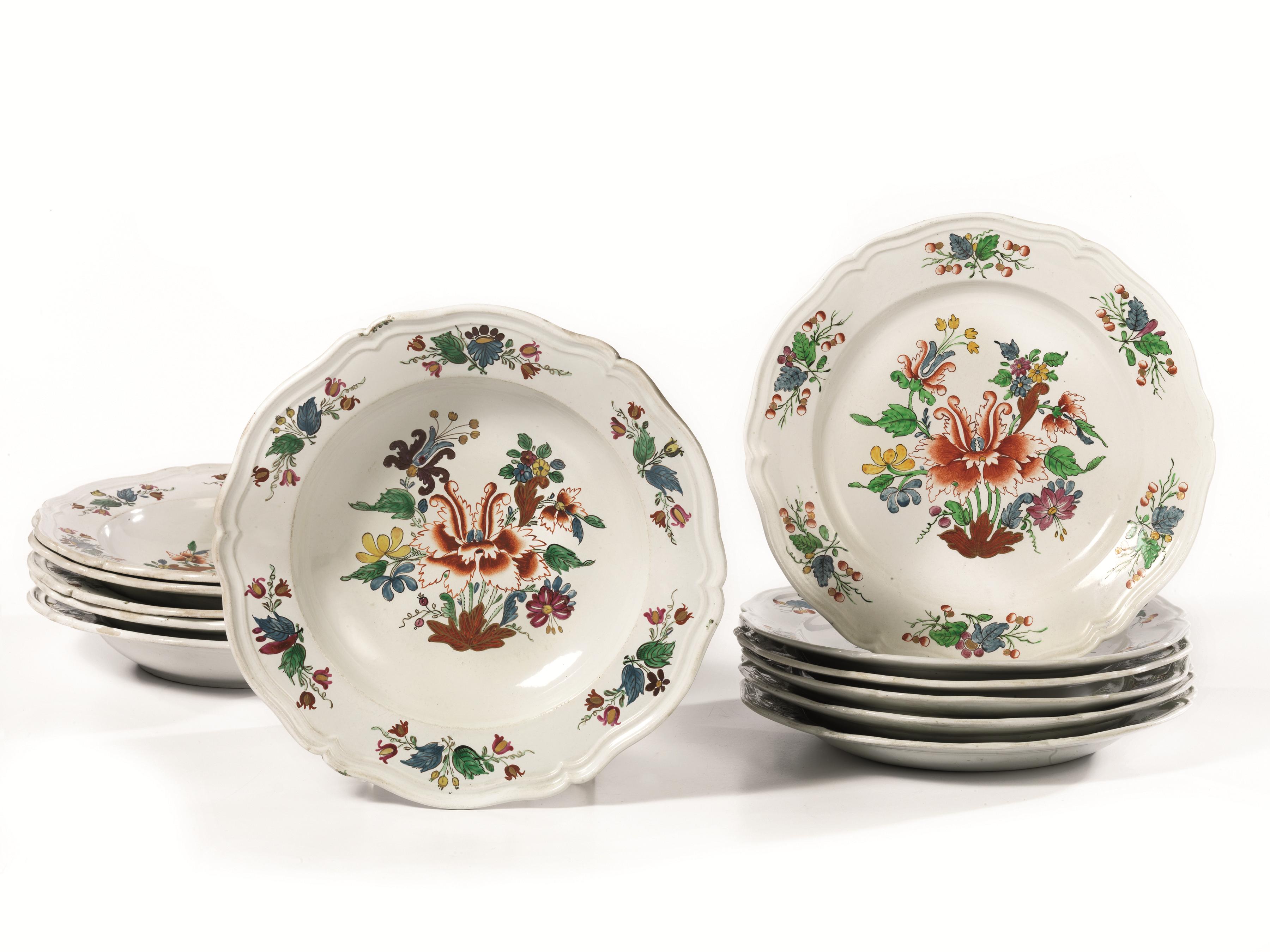 Sei piatti e sei scodelle, Manifattura Ginori, in porcellana decorata con...
