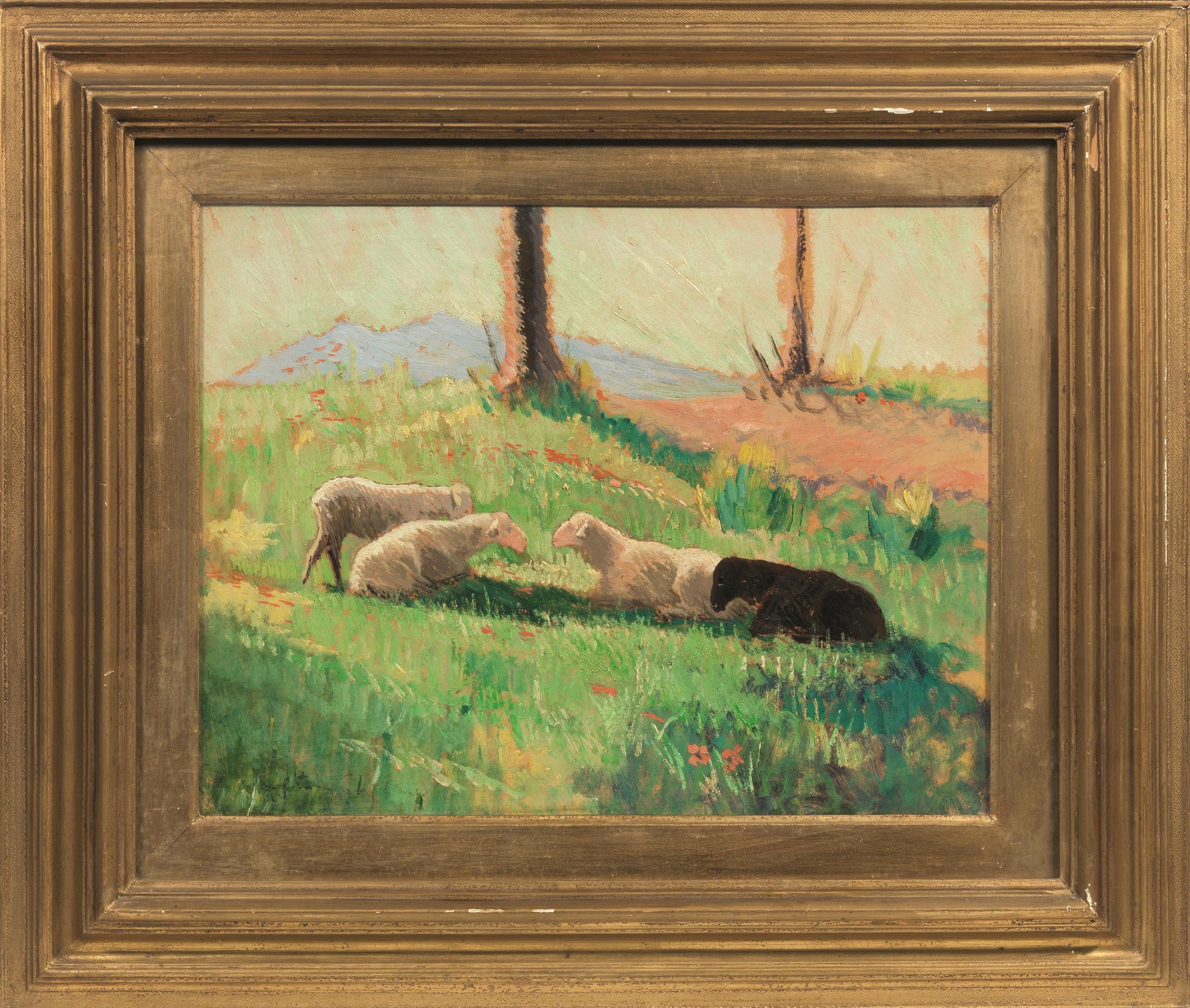 Valentino Ghiglia(Firenze 1903 - 1960)PECORELLEolio su cartoncino, cm...