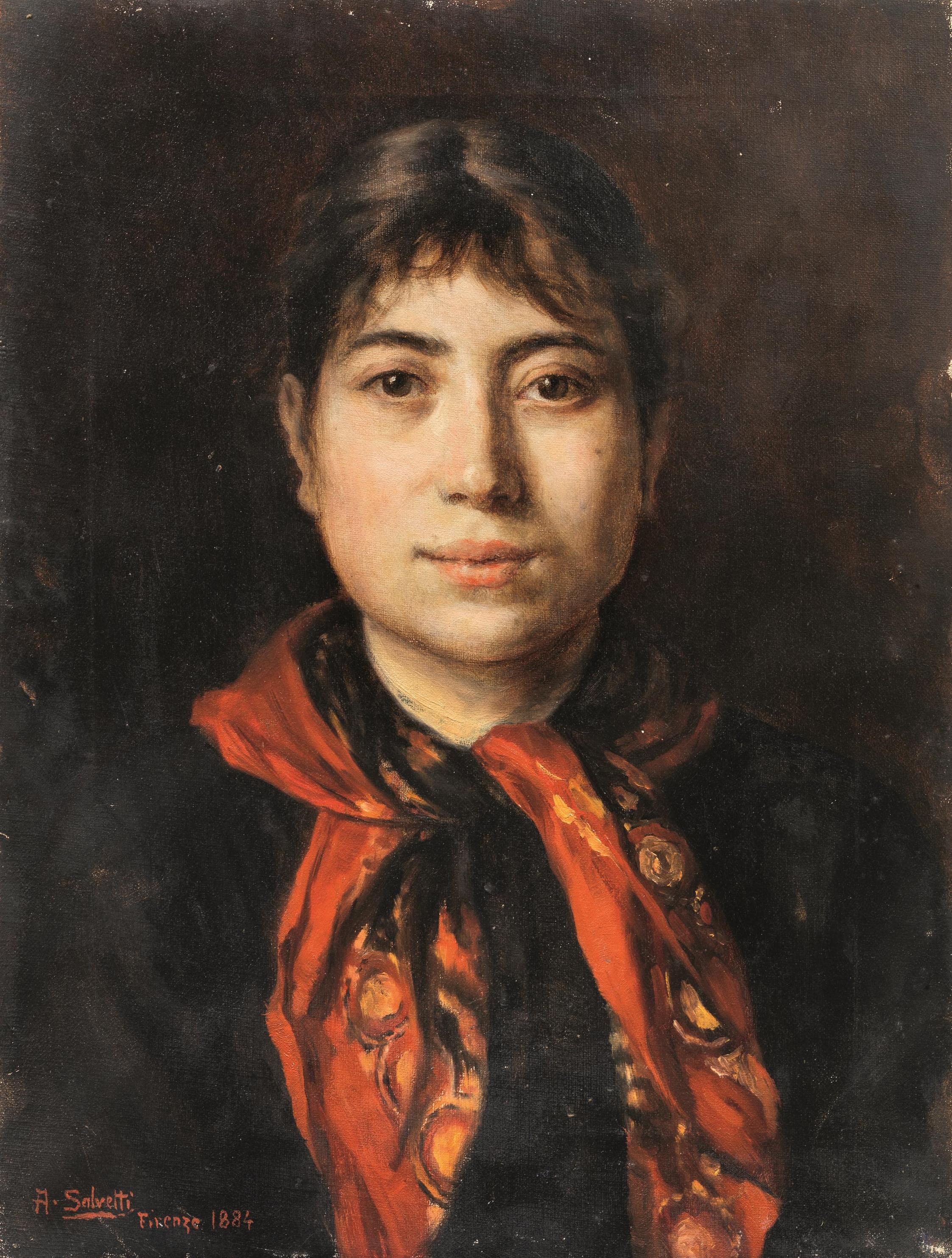 Lotto 411 | Antonio Salvetti(Colle Val d'Elsa 1854-1931)RITRATTO DI CONTADINELLA olio su...