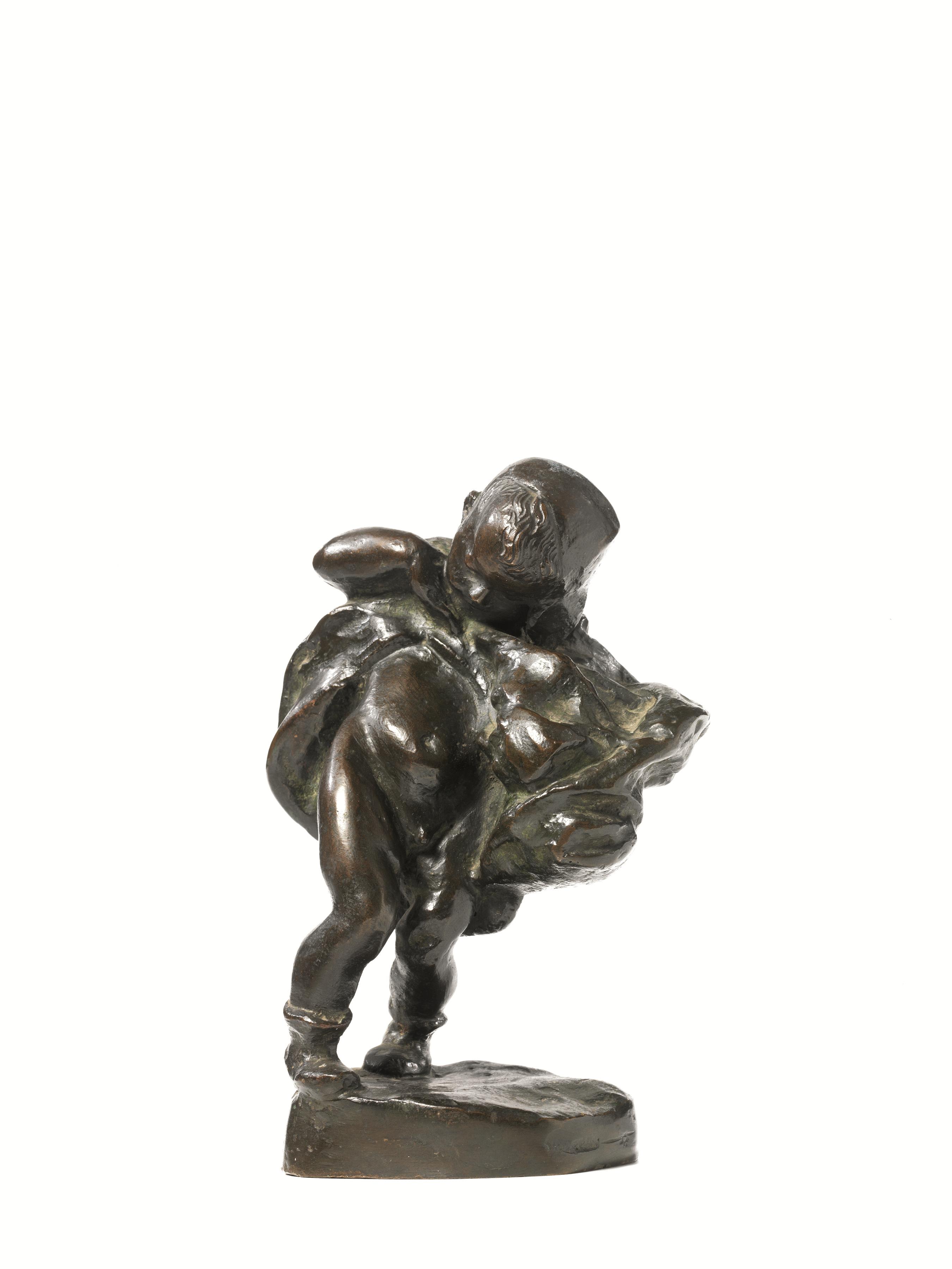 Decimo Passani(Carrara 1884 - 1952)BAMBINO CHE GIOCA COL MANTELLObronzo, alt....
