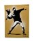 Banksy FLOWER THROWER sprayed stencil graffiti su cartone, cm 28,5x21,2; es....