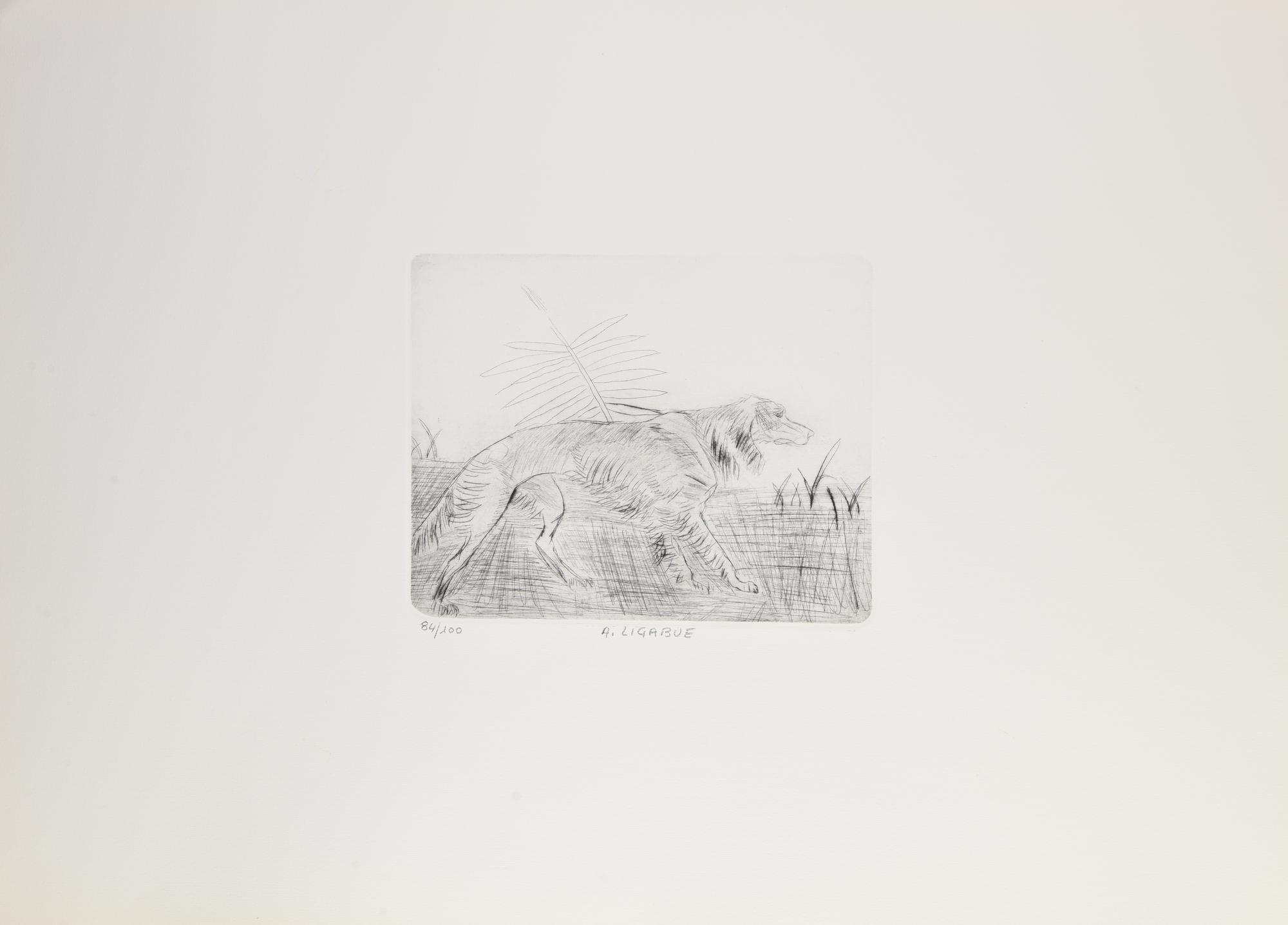 Antonio Ligabue SEGUGIO puntasecca, cm 20x24,5 su foglio 50X70; es. 84/100...