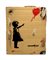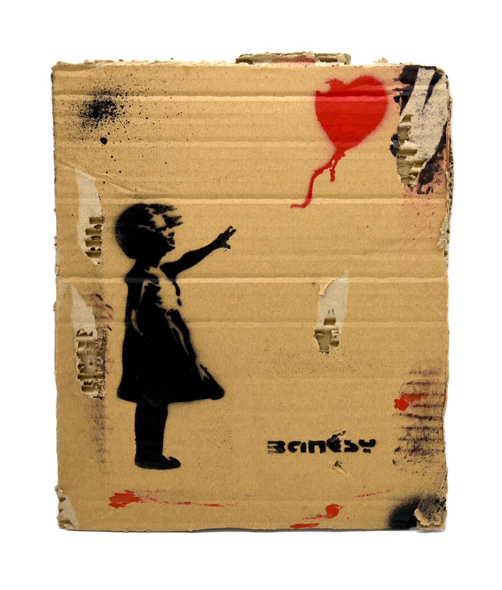 Banksy BALLOON GIRL sprayed stencil graffiti su cartone, cm 34x28 sul retro:...
