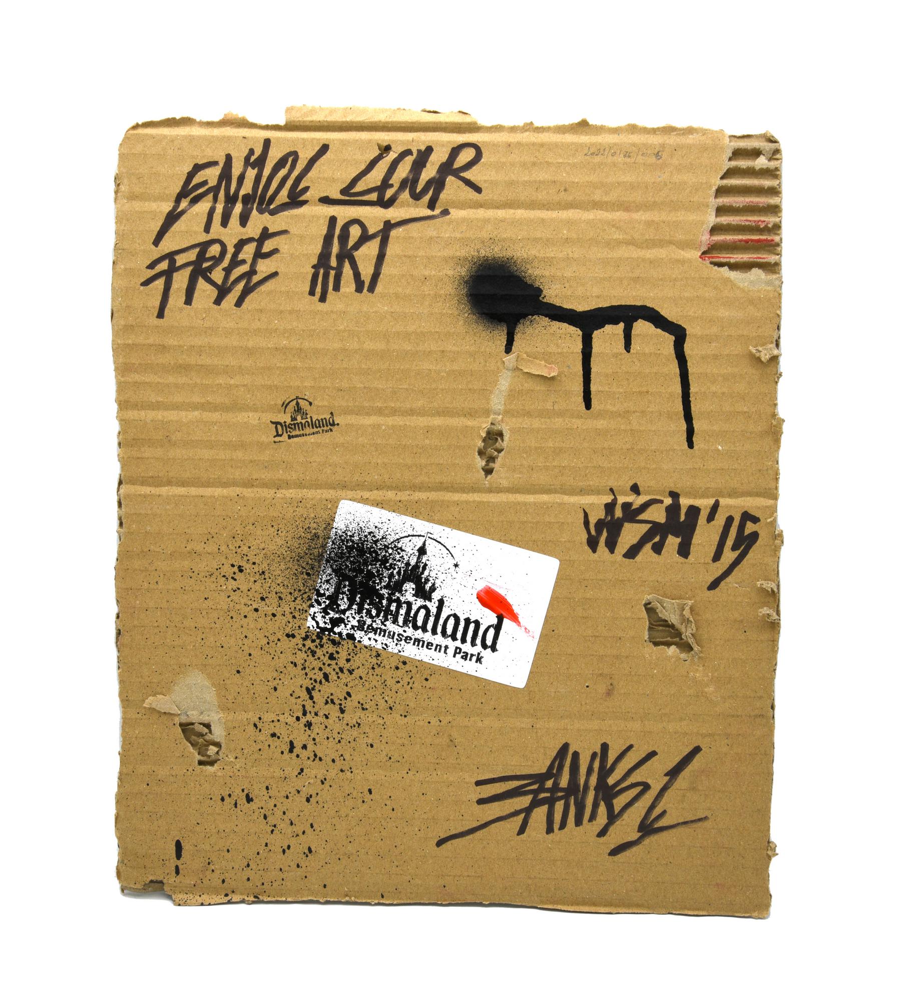 sul retro: timbro ed etichetta Dismaland ed iscritto "enjoy your free art"