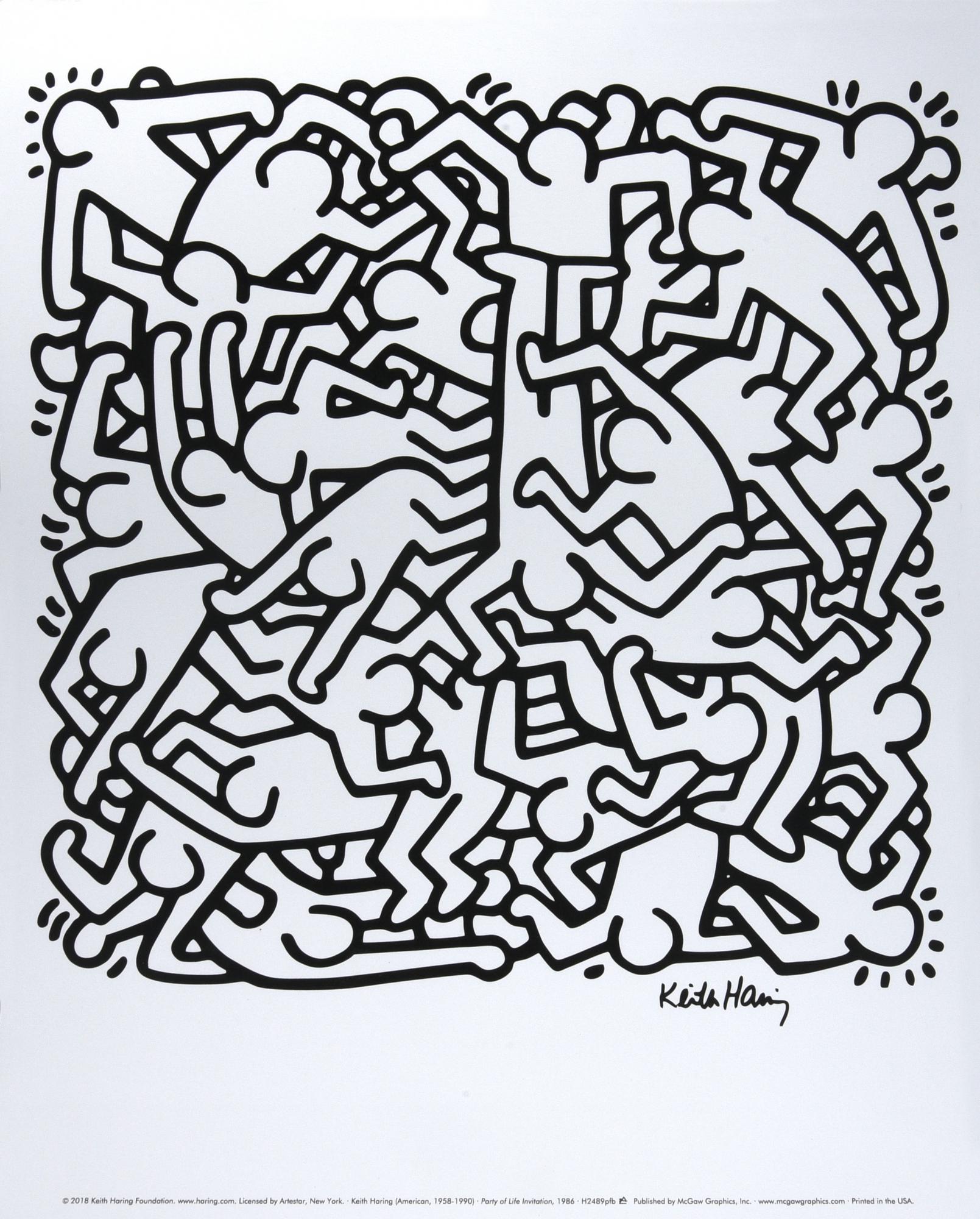 Keith Haring PARTY OF LIFE INVITATION, 1986 stampa, cm 37x30 pubblicato da...