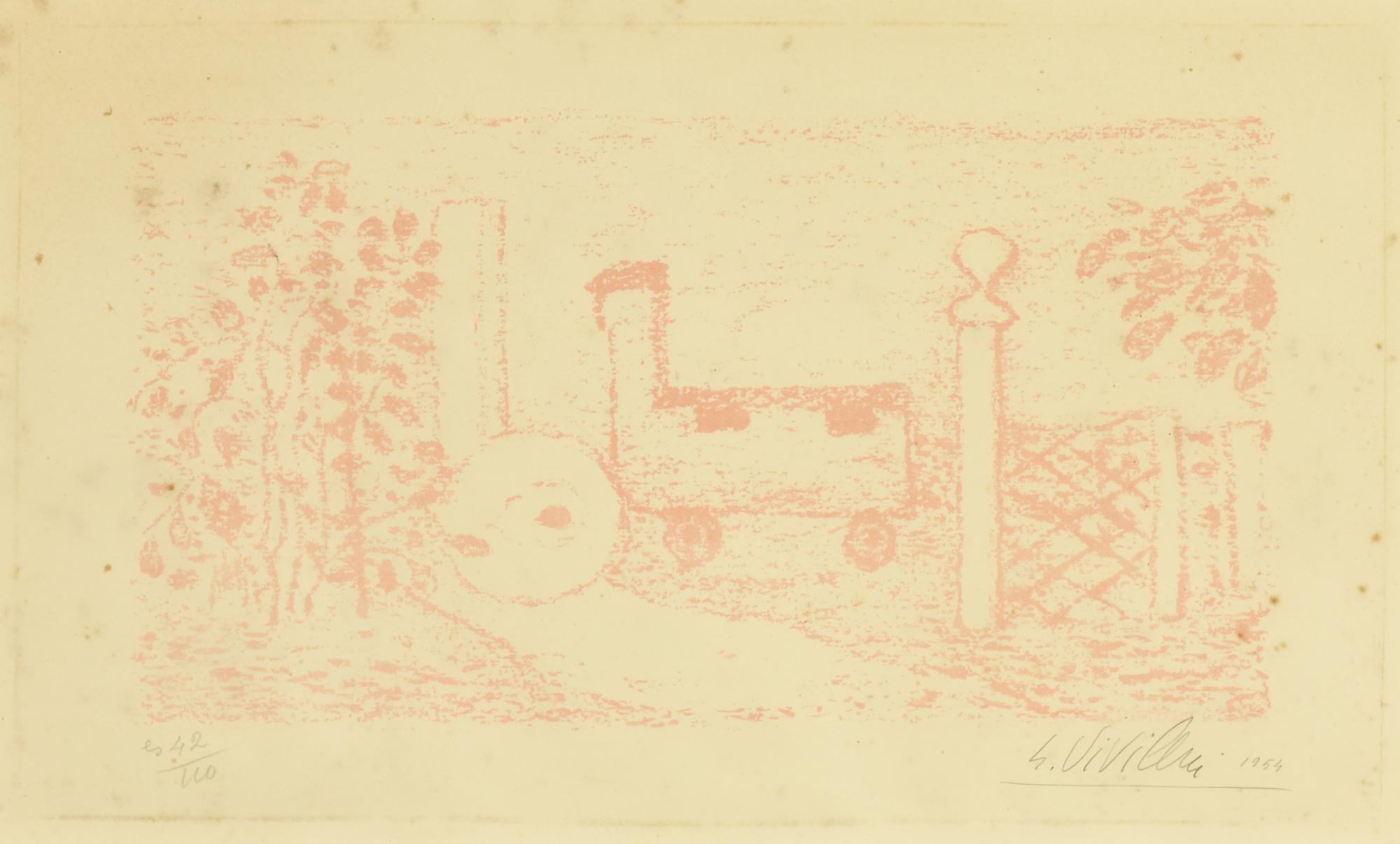 Giuseppe Viviani CORTILE litografia, cm 39x53; es. 42/110 firma e data...
