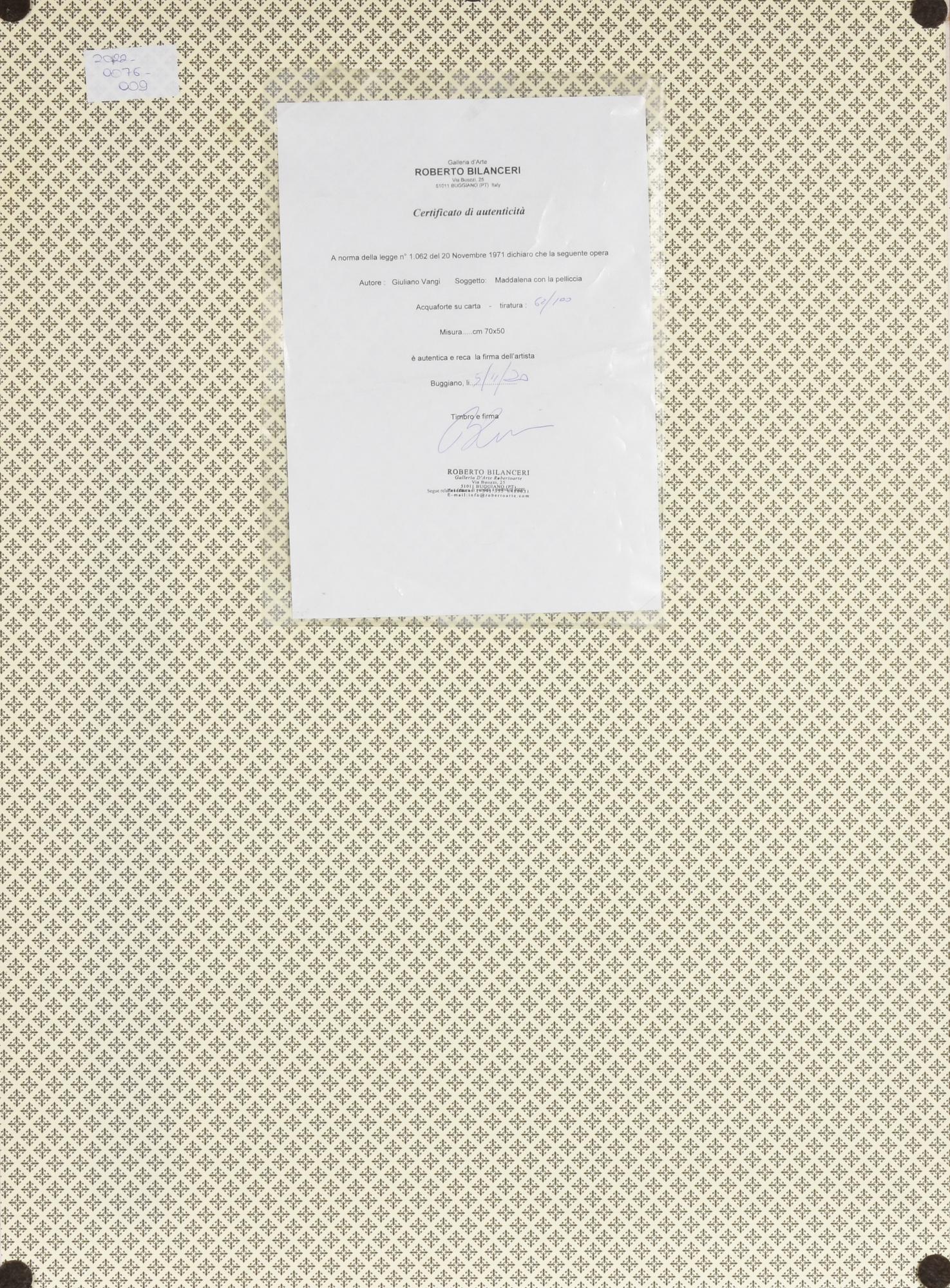 L'opera e' accompagnata da certificato di provenienza della Galleria Roberto Bilanceri