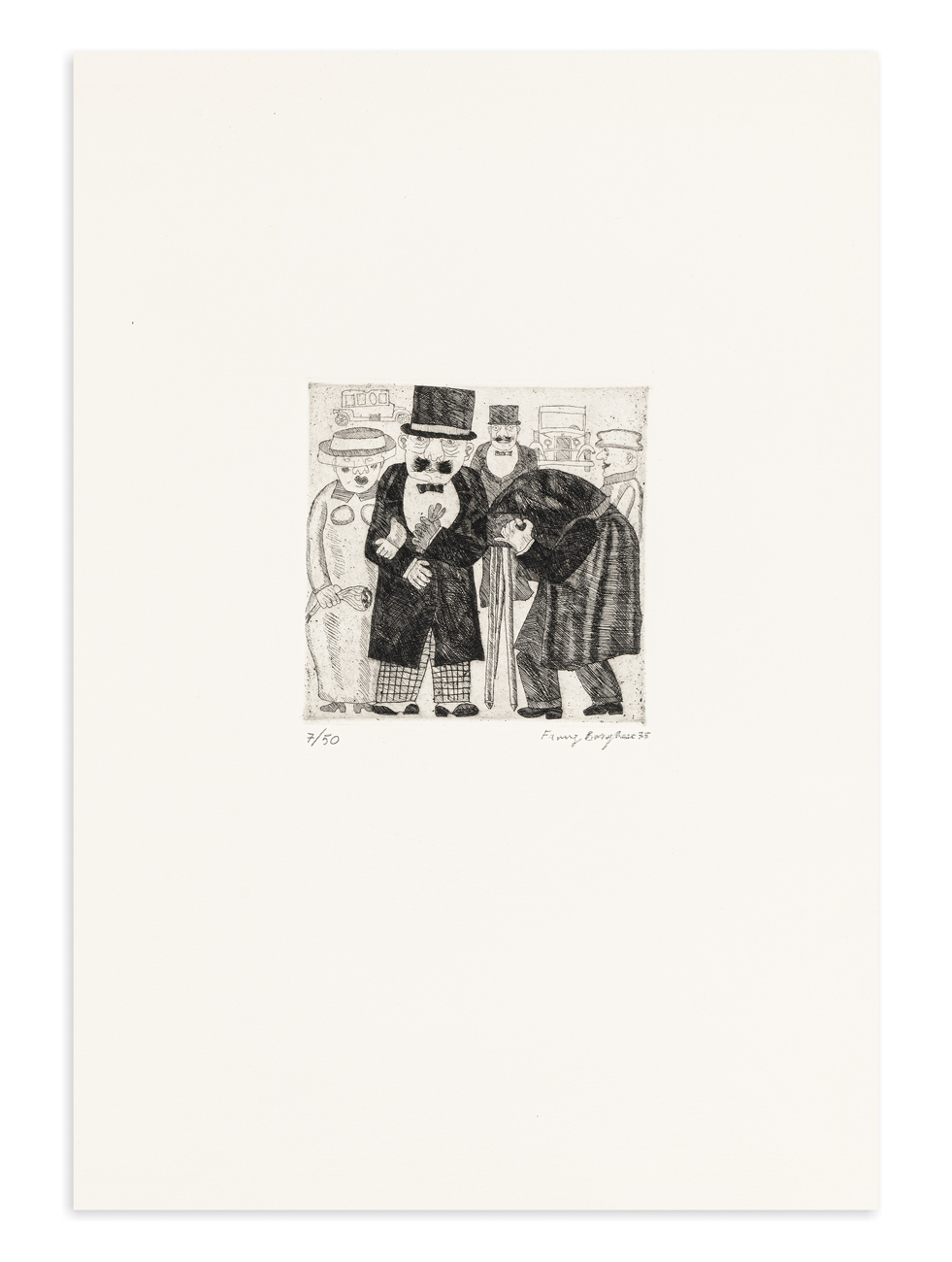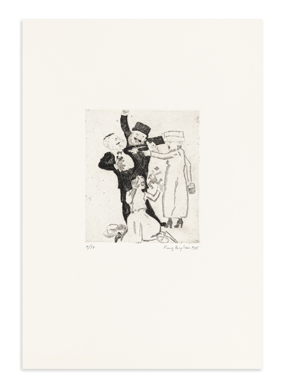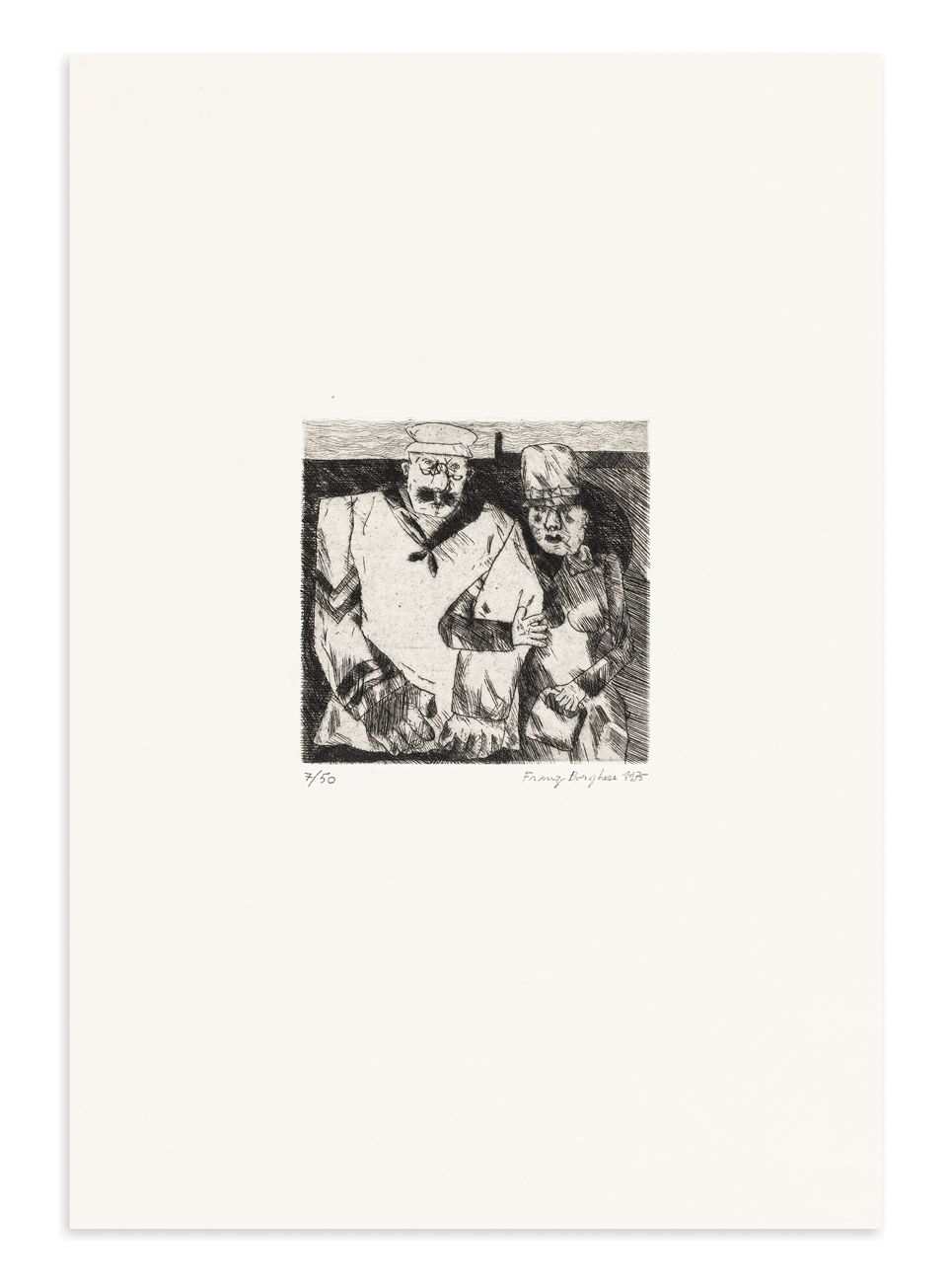 Cartella contenente introduzione e commenti di Ugo Moretti e 7 acqueforti di Franz Borghese, ciascuna recante firma, datazione e numerazione (Esemplari 7/50) a matita al fronte