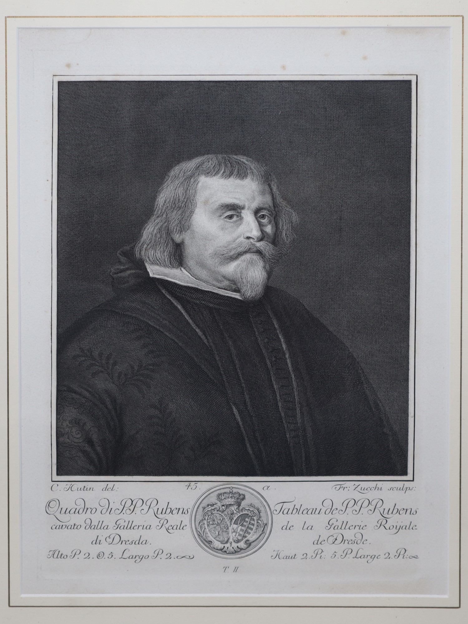 Francesco Zucchi (Italian 1692-1764) - Gentiluomo, XVIII secolo cm 33,5 x cm 24, in cornice cm 49,5 x cm 48 Incisione ad acquaforte Quadro di P.P.Rubens cavato dalla Galleria Reale di Dresda.