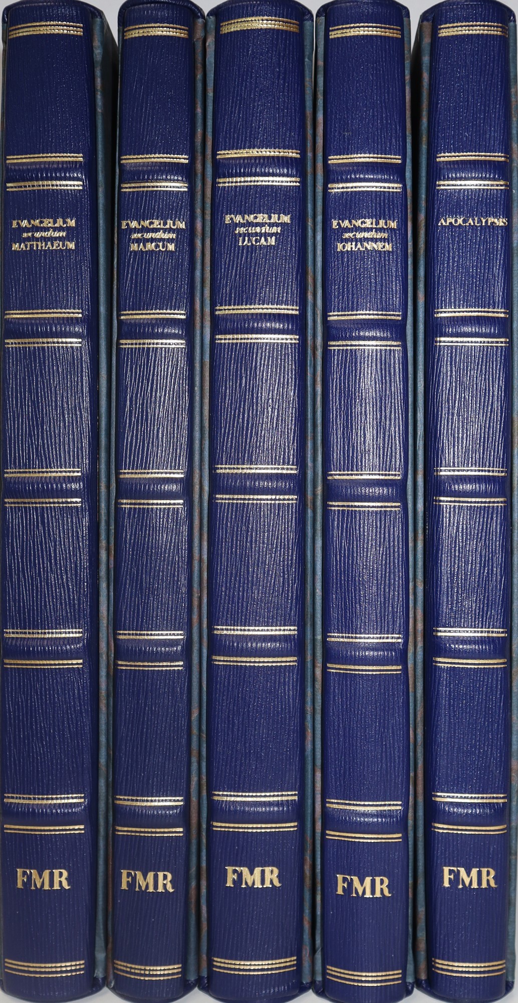 N.5 Volumi della Collana "I Vangeli", 2002 cm 36 x cm 24,5 Franco Maria Ricci, testo latino a fronte nella edizione critica oxoniese d J.Wordsworth e H.White, FMR spa / Società del Gruppo ART'E', Milano