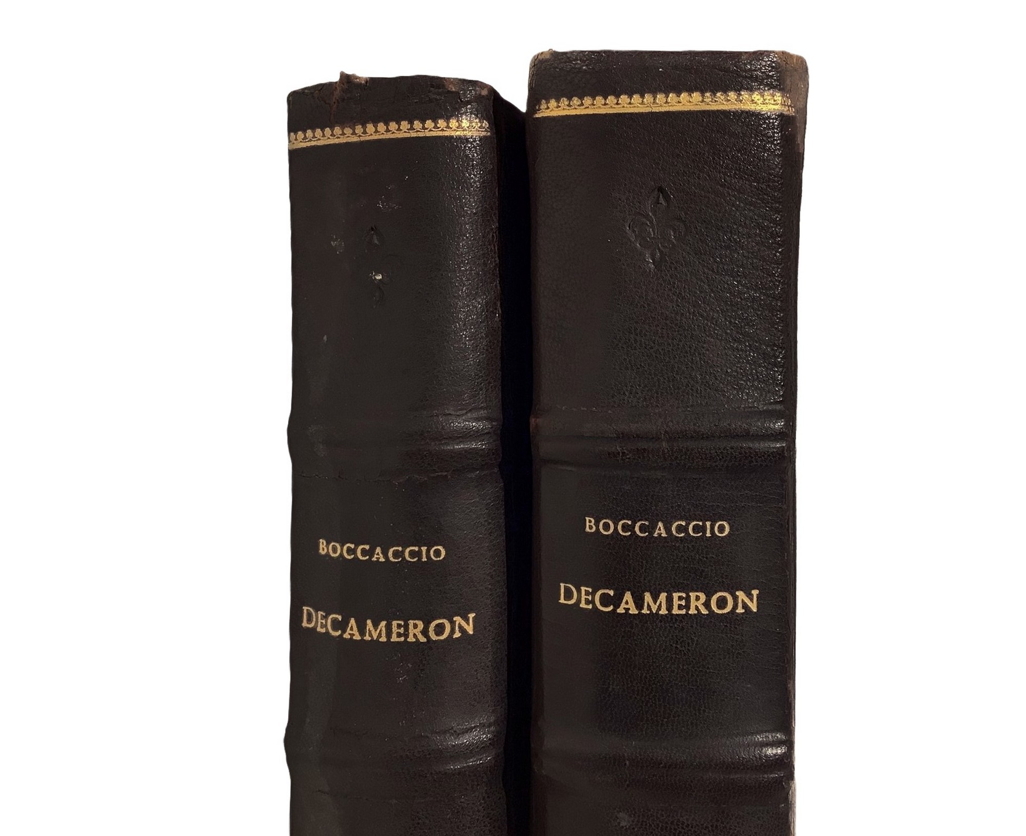 Opera pubblicata nel VI centenario della morte di Giovanni Boccaccio. Testo critico di Vittore Branca, con opere riprodotte in fotolitografia, in 42 tavole a piena pagina di Vespignani, Clerici, Brindisi, Sasso, Campigli, Maccari, Omiccioli, Salvadori, Mattioli, Migneco, Attardi, Mazzacurati, Ziveri, Bartoli, Pirandello, Guttuso, Zigaina, Martini, Manzù, Levi e molti altri. Capilettera disegnati da Domenico Purificato. Stampa ad opera di Alfonso Allegrini e Mario Bottiglieri, rilegatura in piena pelle di G. Scura con titolo impresso sul dorso. Le stampe sono impresse da Pietro Fiorani.