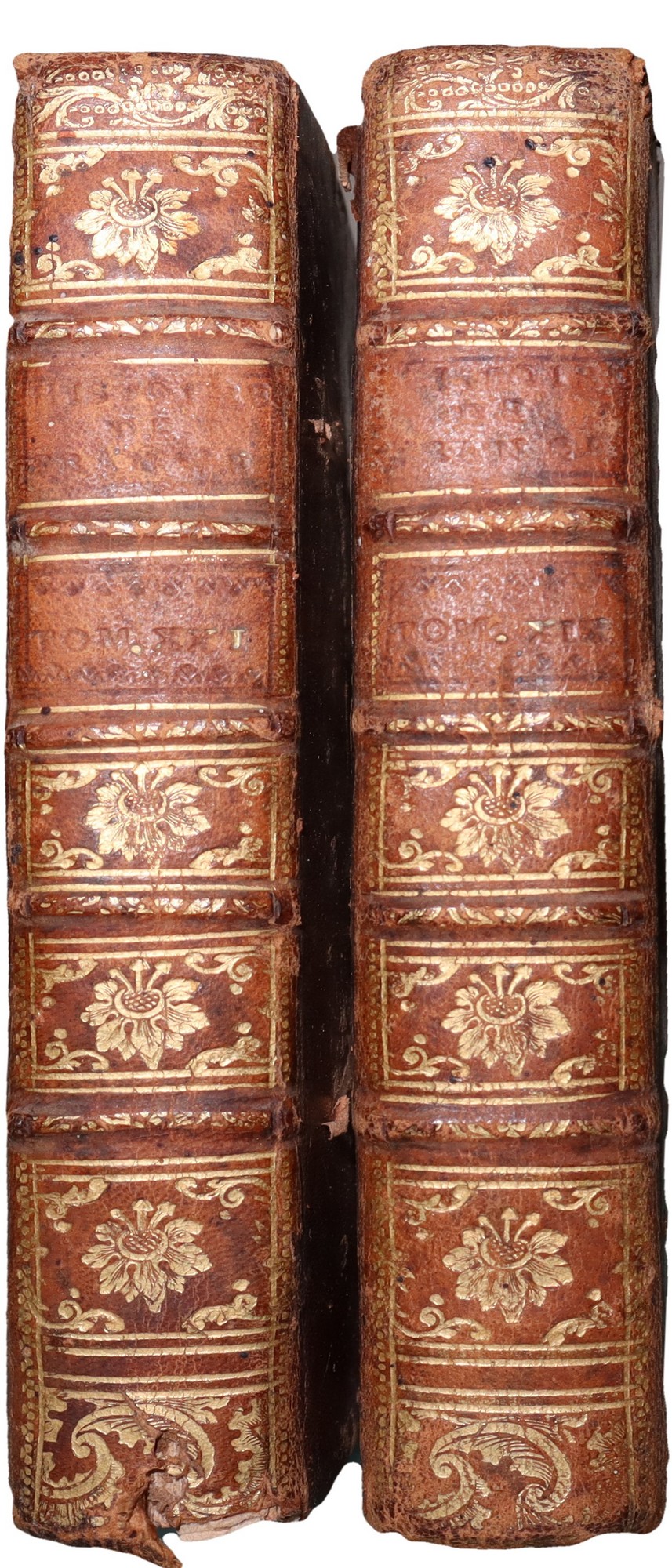 Gabriel Daniel (1649-1728) - Histoire de France, 1758 Depuis l'etablissement de la monarchie francoise dans les gaules. Tomi XIX e XXI in due volumi, Amsterdam e Lipsia. Arkste' e Merkus. Opera incompleta, presenti fioriture