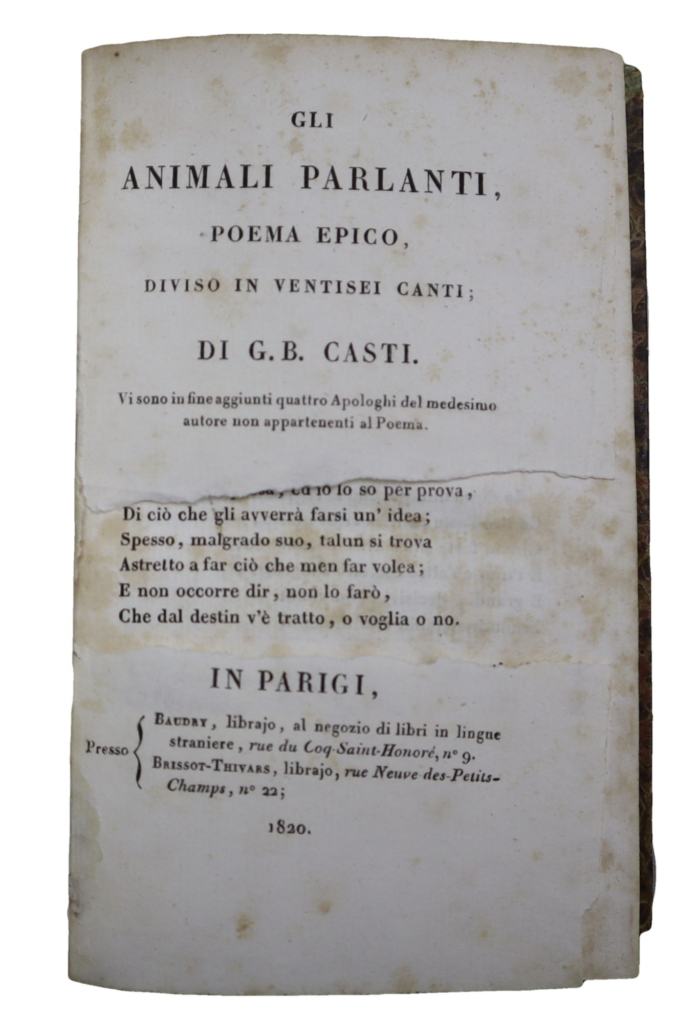 Giovanni Battista Casti (Acquapendente 1724-Parigi 1803) - Gli animali parlanti, 1820