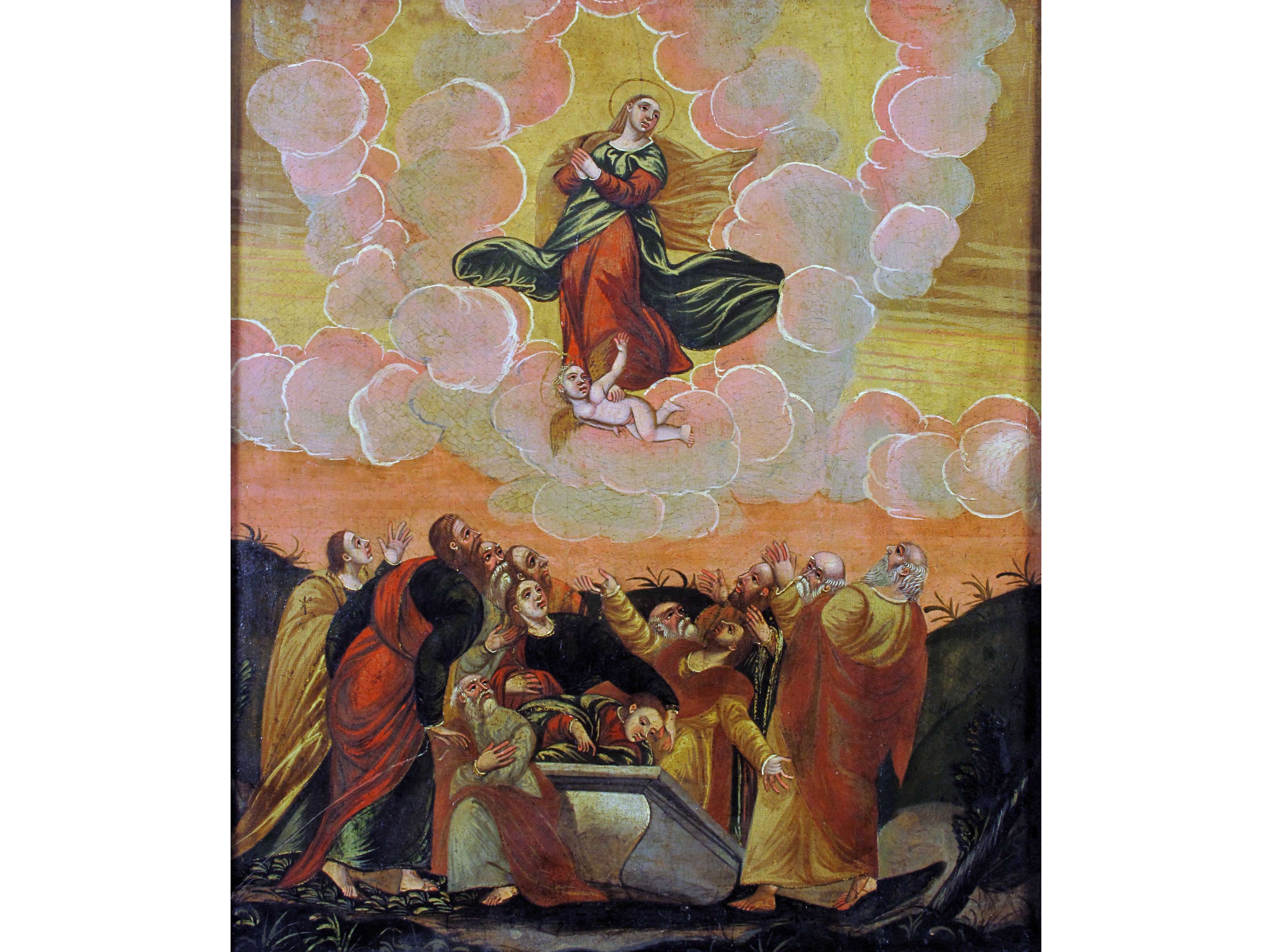 Scuola veneto cretese (XVIII secolo) Ascensione Olio su tavola Misure 55x46 cm