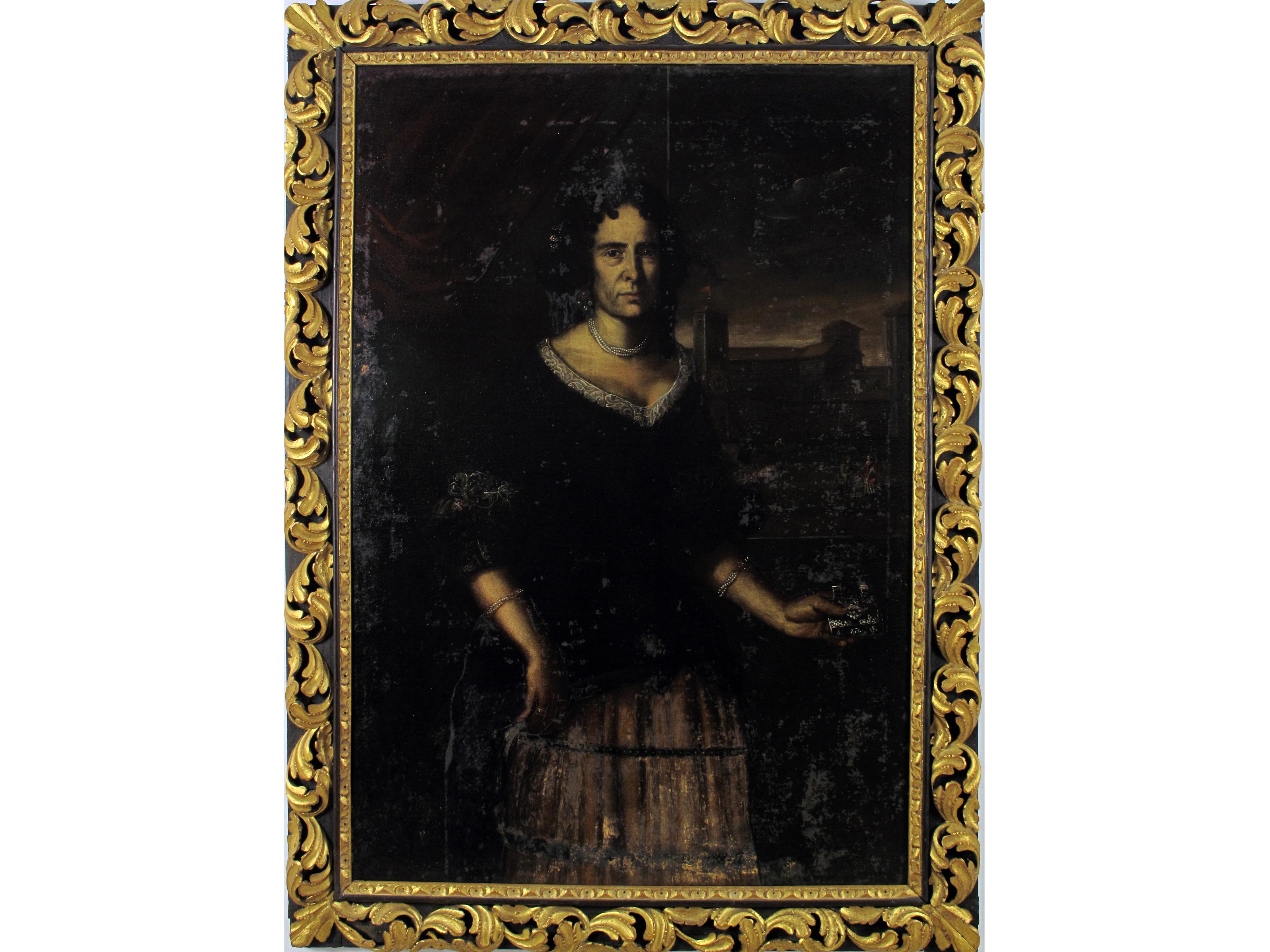 Scuola lombarda (XVII secolo) Nobildonna Olio su tela Cornice coeva Misure 134x94 cm