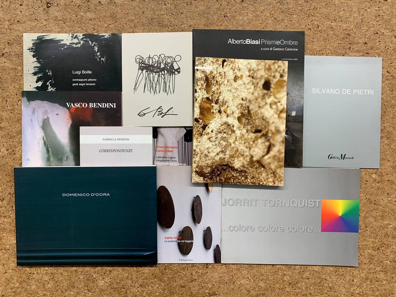 Lotto unico di cataloghi illustrati tra cui Luigi Boille, Vasco Bendini, Gabriella Benedini, Giovanna Bolognini, Carlo Ivaldi (2), Domenico D'Oora, Alberto Biasi, Isabella Nazzarri, Jorrit Tornquist, Silvano de Pietri