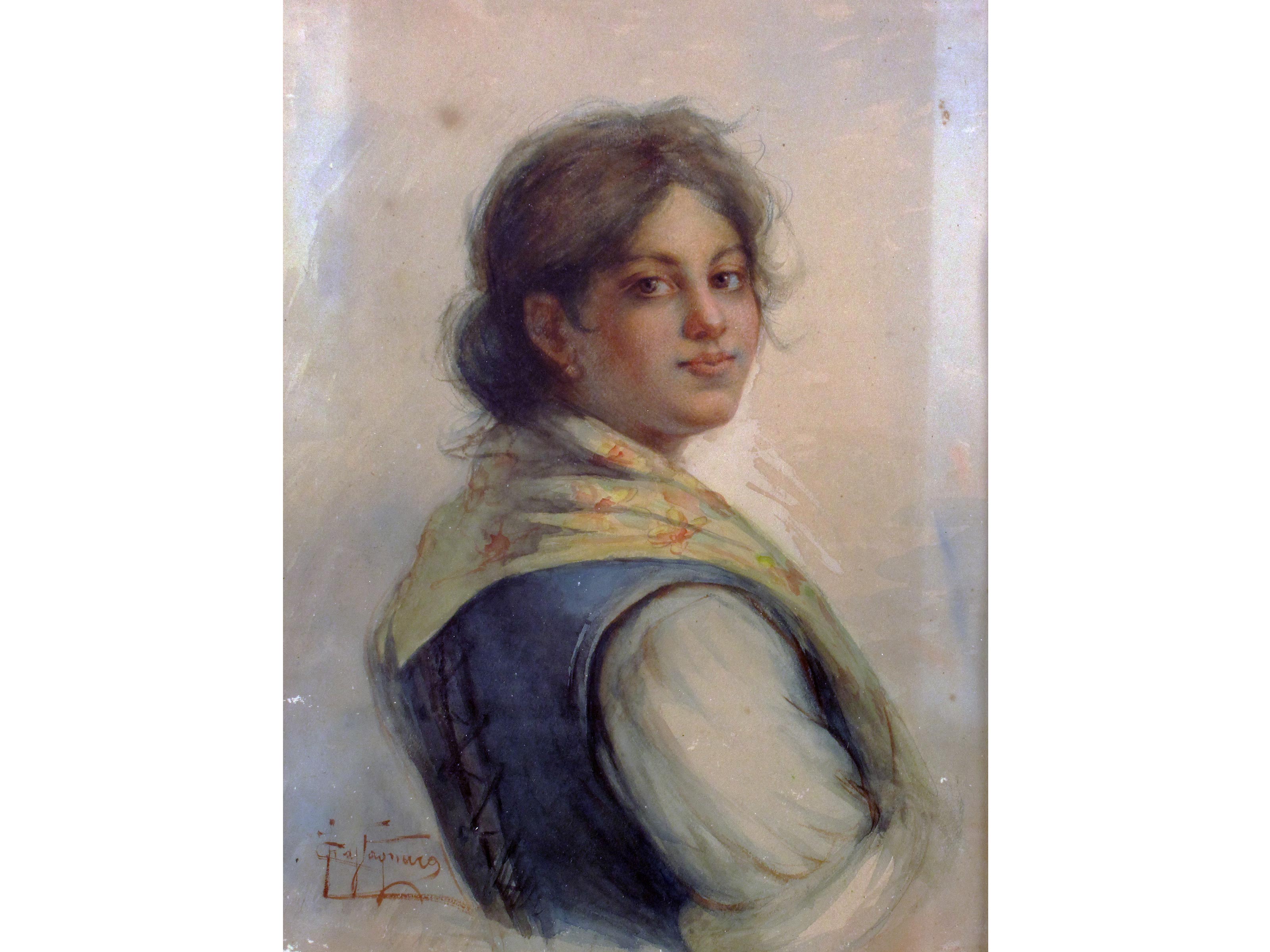 Felice Castegnaro (Montebello Vicentino 1872-Zero Branco 1958) Ritratto di popolana Aquarello su carta Firmato Misure 37x28 cm