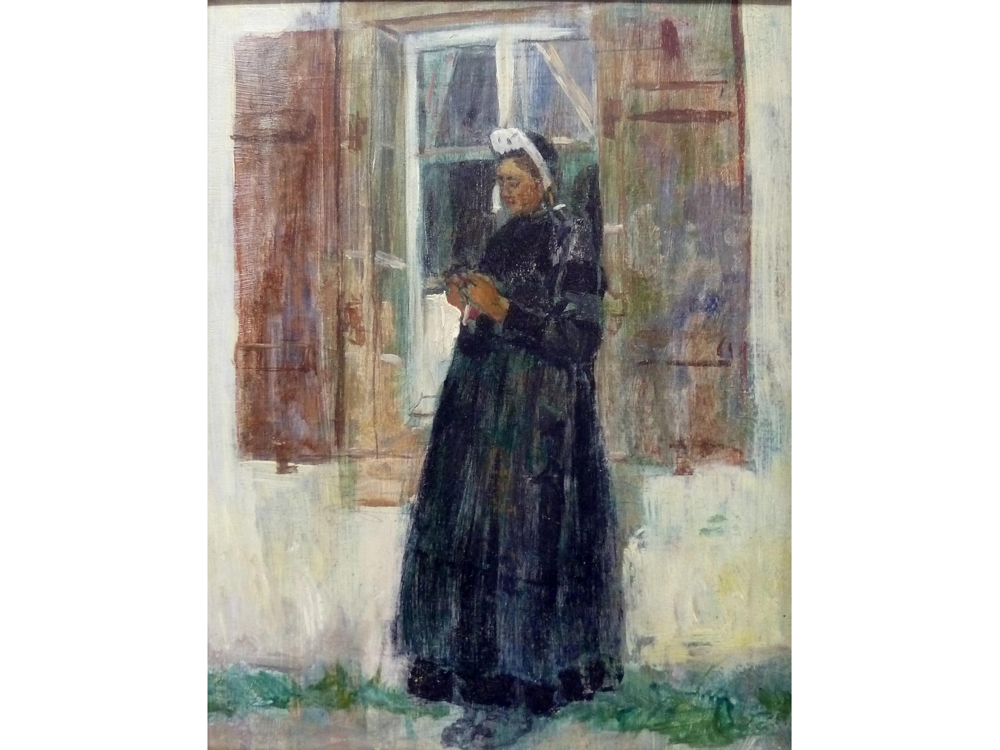 Luigi Chialiva (Caslano 1842-Parigi 1914) Contadina francese Olio su tavoletta Firmato Misure 27x22 cm