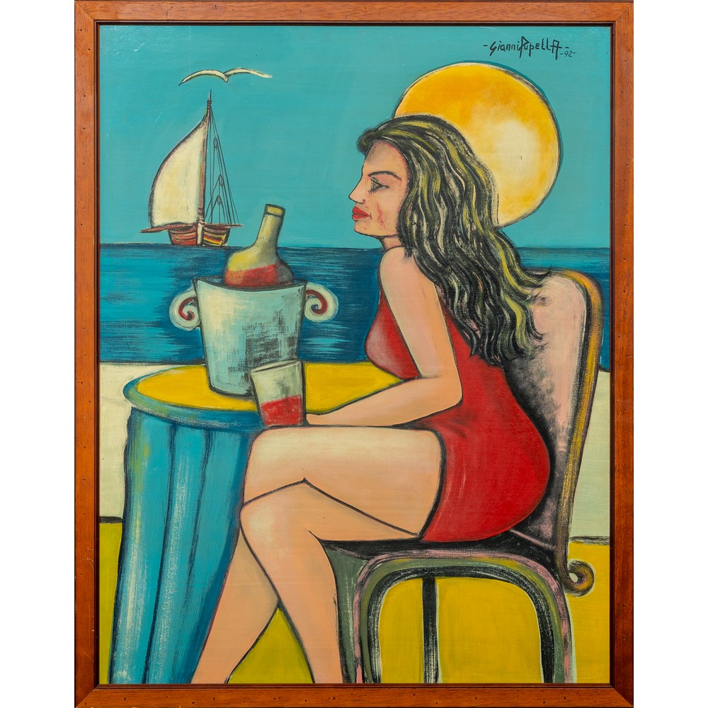 GIANNI PUPELLA, Donna al mare, Olio su masonite