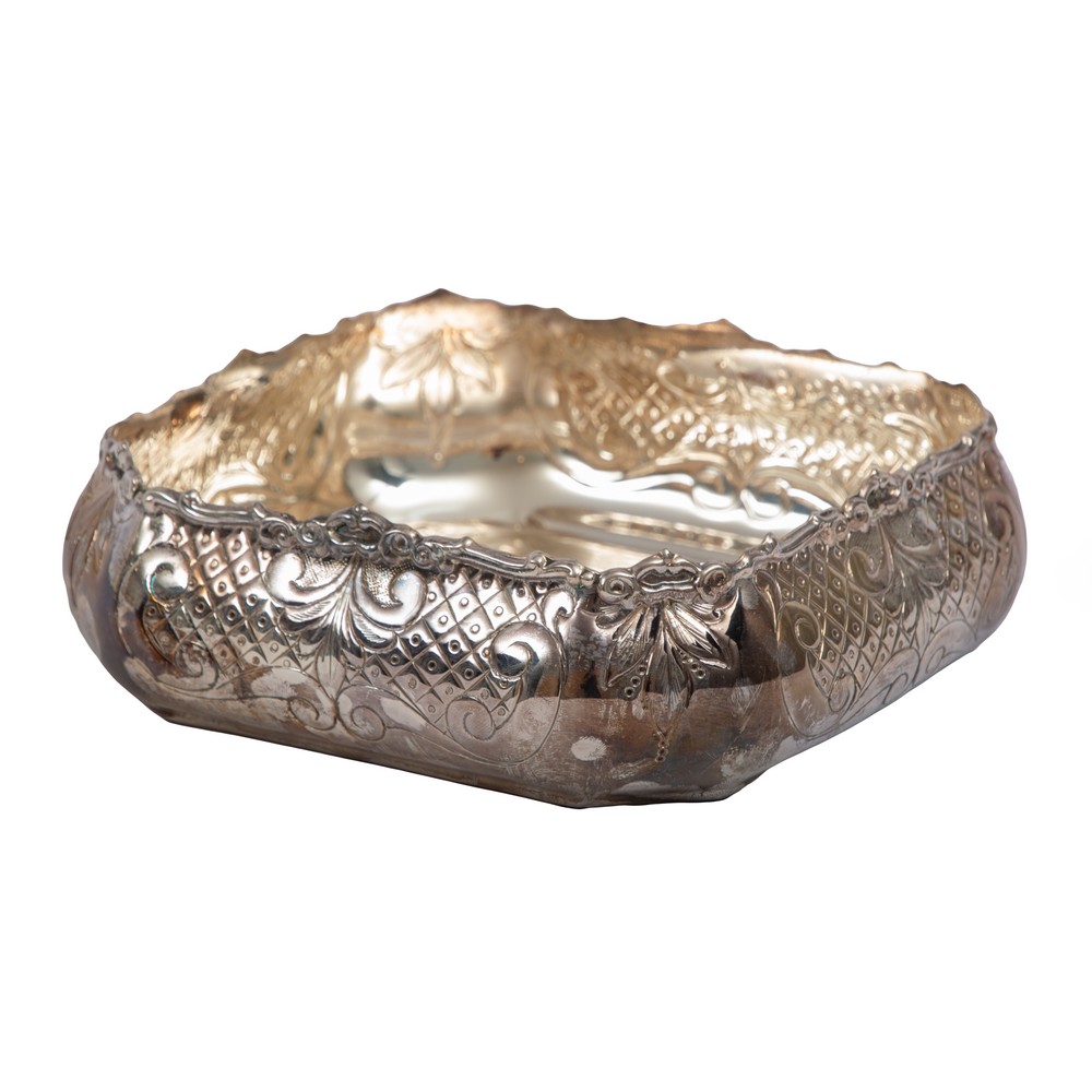 CENTROTAVOLA di forma quadrata in argento sbalzato