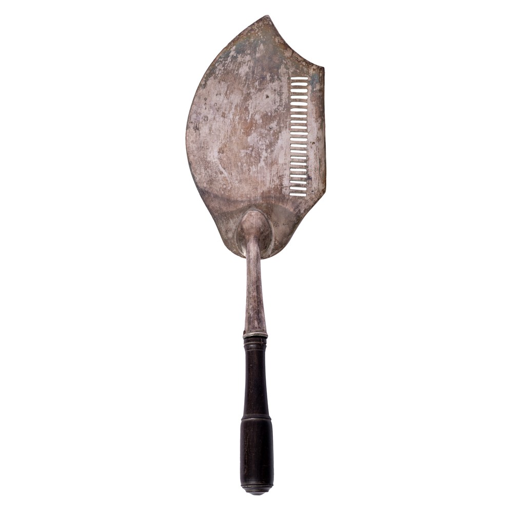 Paletta per pesce in argento, manico il legno. Marchio del console VB, riferibile a Vincenzo Lo Bianco (g. 281 peso lordo).