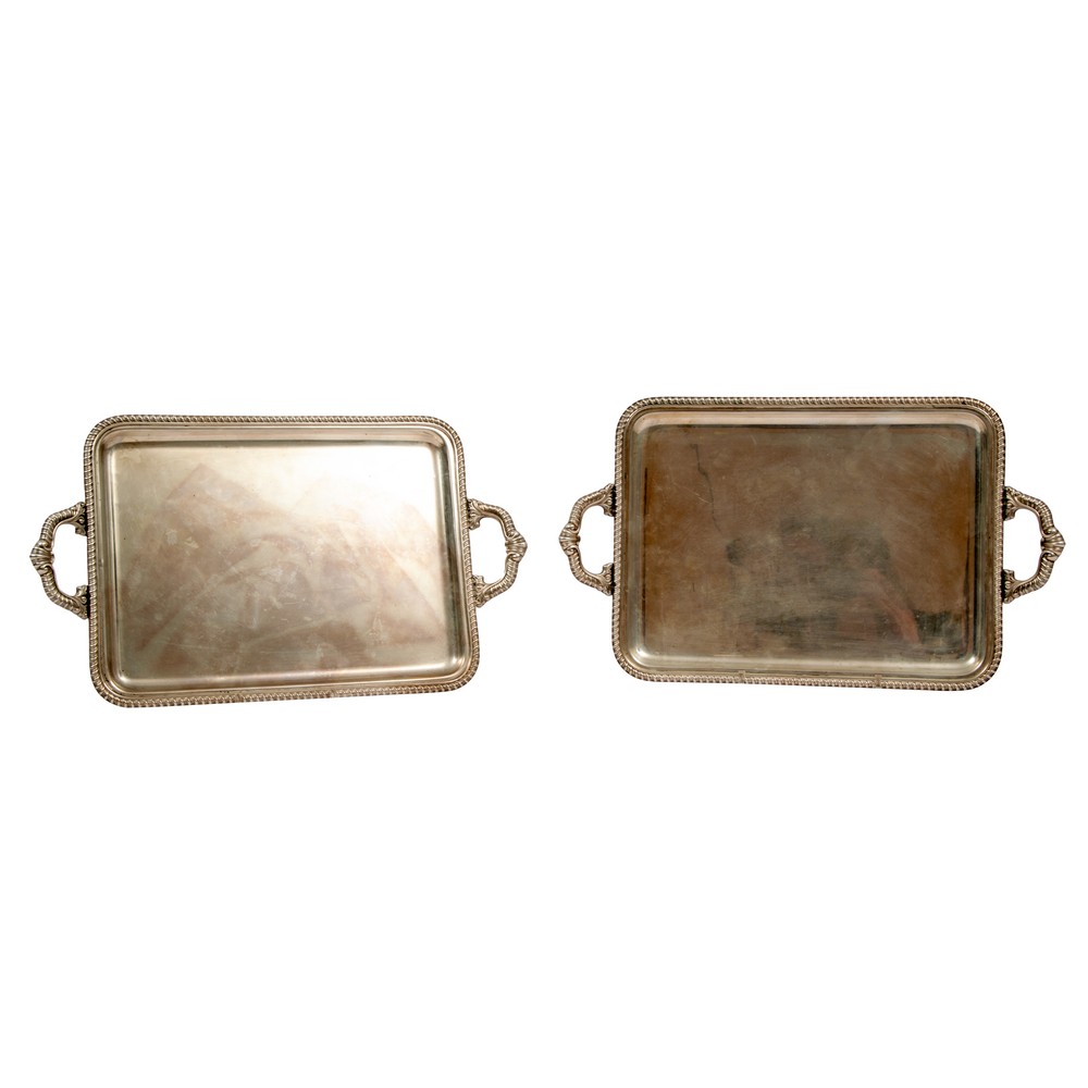 COPPIA VASSOI rettangolari in argento, bordo sbalzato