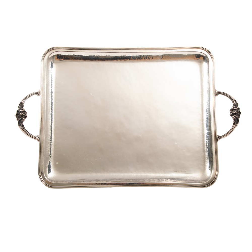 VASSOIO rettangolare con manici in argento (g. 3072).