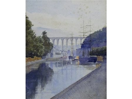 Riccardo Galli (Milano 1869-Barzio 1944) Canale a Parigi Acquarello su carta Firmato Misure 30x25 cm