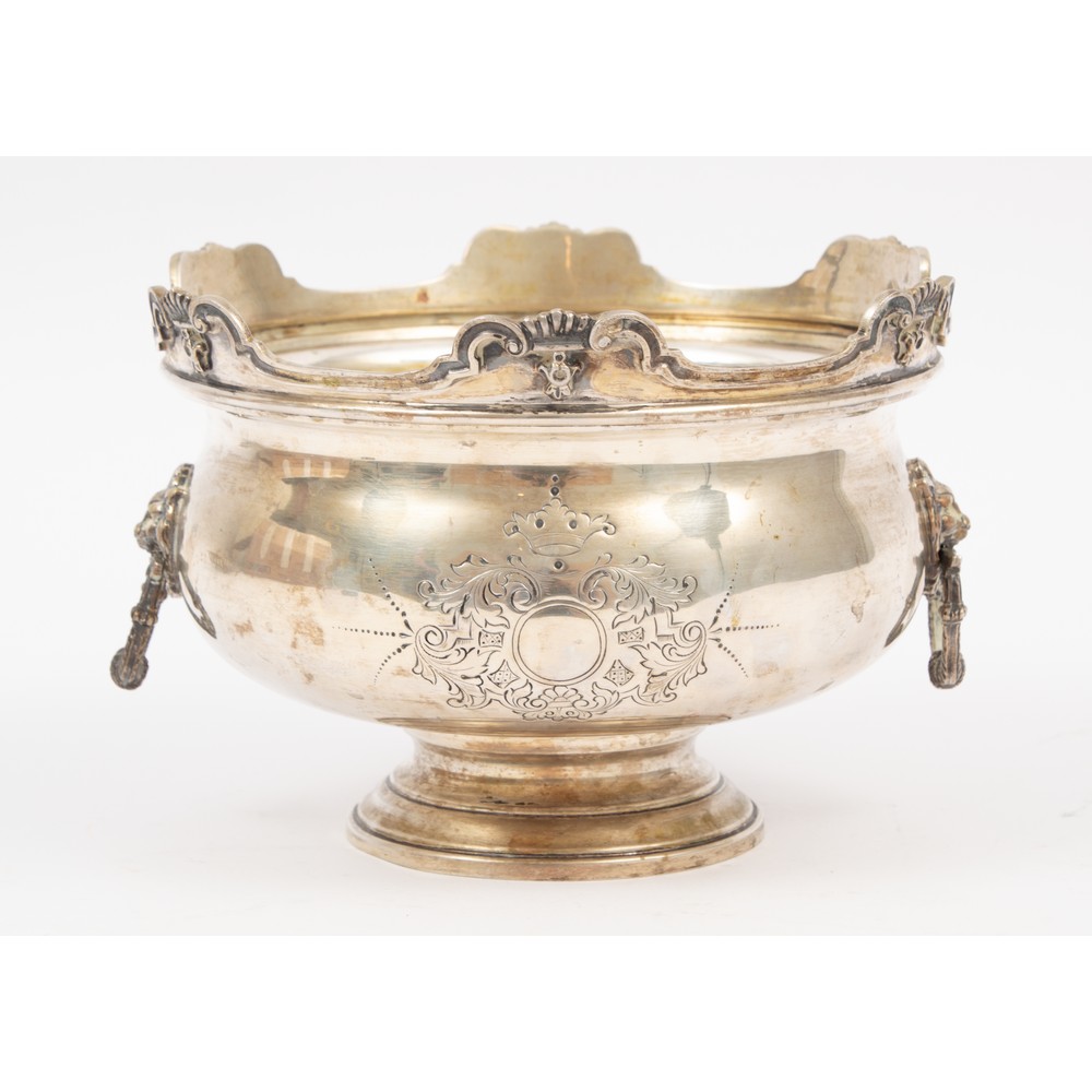 CENTROTAVOLA in argento sbalzato e cesellato con stemma nobiliare. Argentiere Silver House di Pizzera Gianmario - Milano. (g. 958).