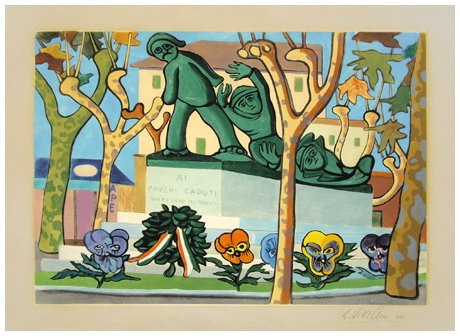 GIUSEPPE VIVIANI Agnano Pisano 1898 – Pisa 1965 Monumento ai Caduti di Viareggio 1956 Acquatinta a 4 rami es.11/200. Firma e data in b. a d. (57 x 76,5 foglio – 40,8 x 57,3 inc.) Pubbl.: “Viviani Opera Incisoria Catalogo Generale” a cura di Nicola Micieli e Silvio Guarasci, Bandecchi & Vivaldi Editore, Pontedera, 1998, tav.120, p.198.