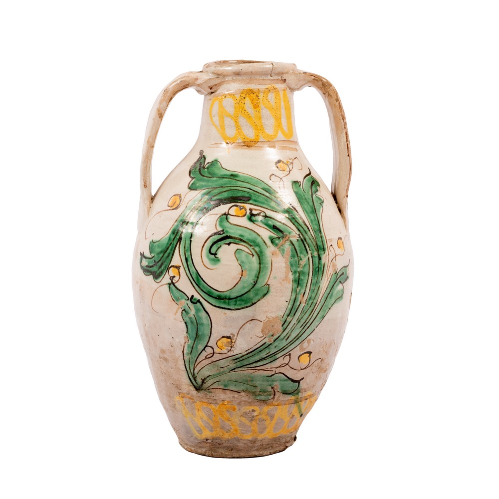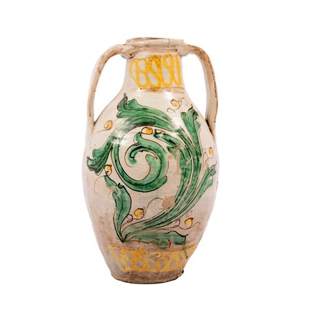 QUARTARA in ceramica decorata e smaltata (difetti e usure).