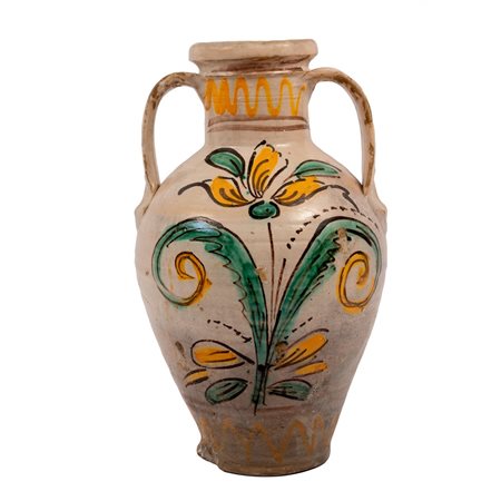 QUARTARA in ceramica decorata e smaltata (mancanze e usure).