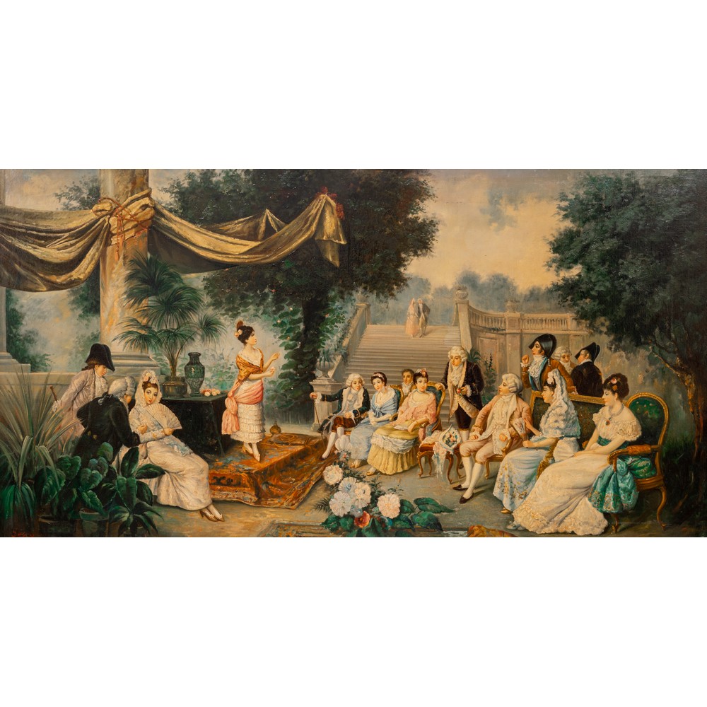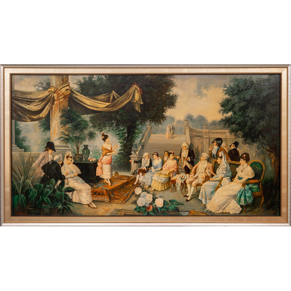 PITTORE SPAGNOLO DEI PRIMI '900, Scena di corte, Olio su tela