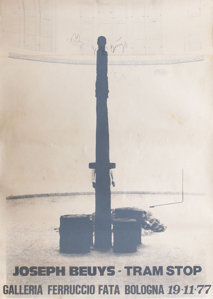 JOSEPH BEUYS (Krefeld 1921 – Düsseldorf 1986) "Tram stop", 1977. Poster per la mostra presso la Galleria Ferruccio Fata, Bologna. Cm 99,5x70. Opera firmata in alto al centro Joseph Beuys. Pubblicazioni: Prestel, Joseph Beuys: Posters, 1994.