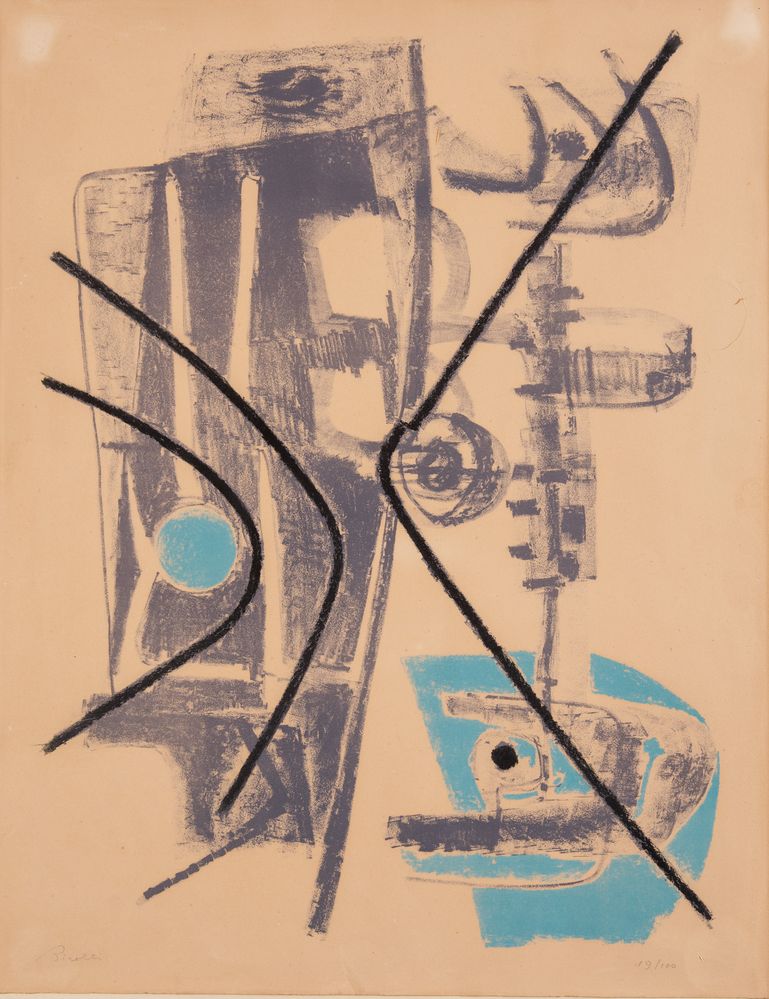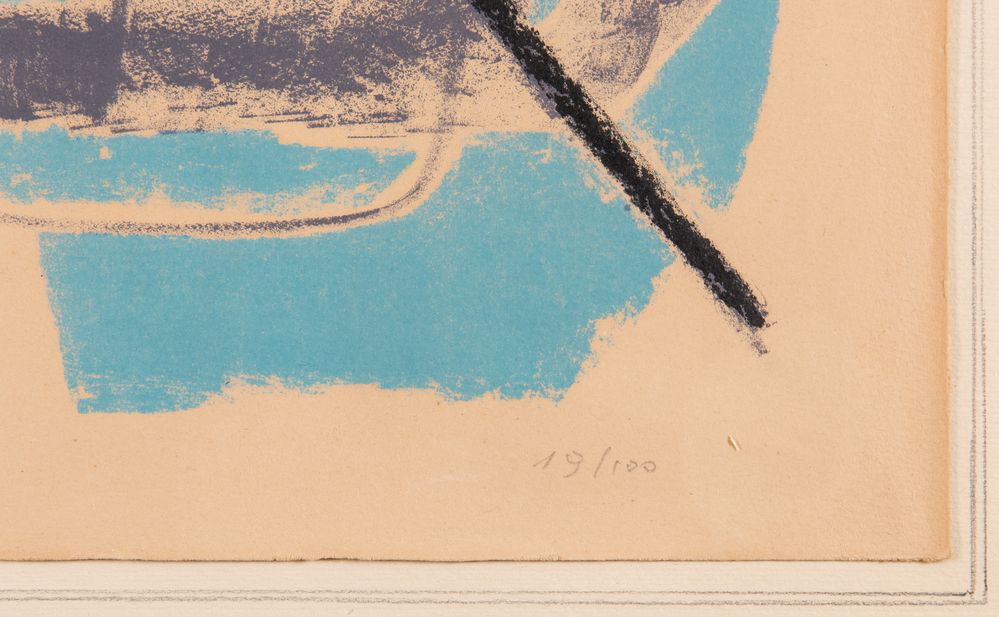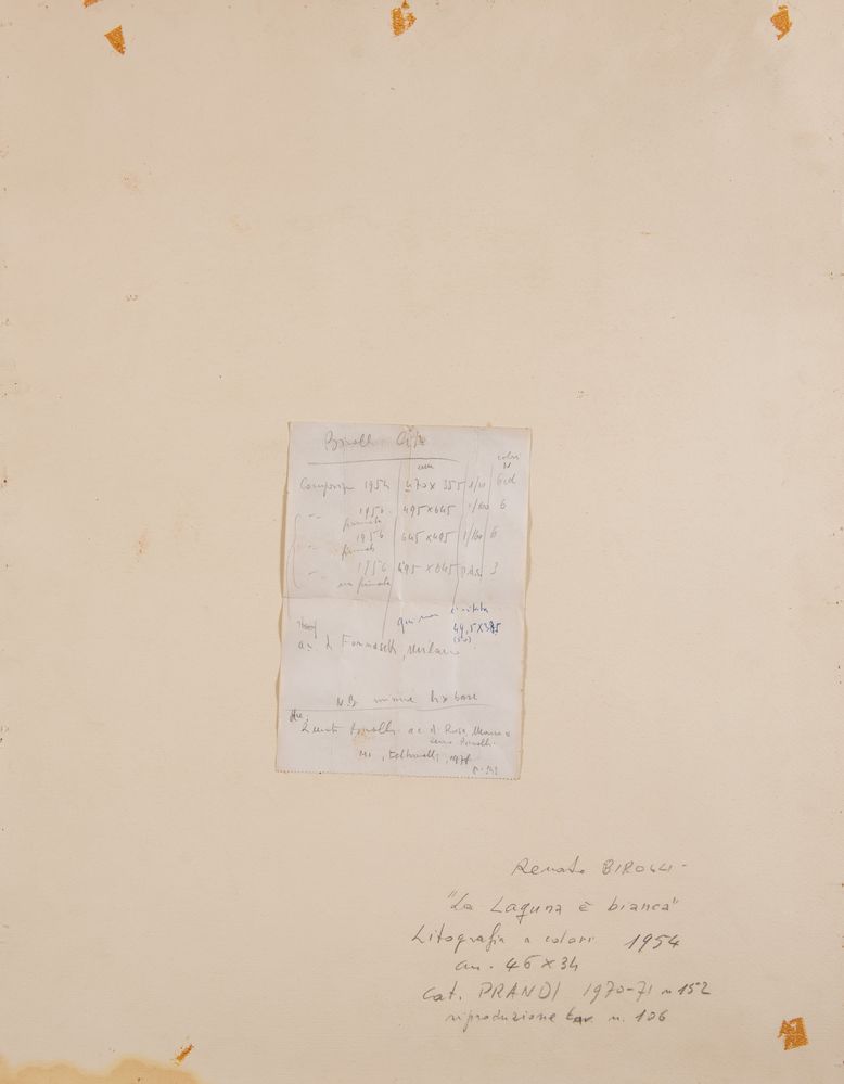 RENATO BIROLLI (Verona 1905 - Milano 1959) "La laguna è bianca", 1954. Litografia a colori su carta. Lastra: cm 46x34; foglio: cm 50x38,8. Opera firmata in basso a sinistra Birolli. Reca numeri di tiratura in basso a sinistra 19/100. Bibliografia: Prandi, 1970 - 71, numero 15°, tavola numero 106.
